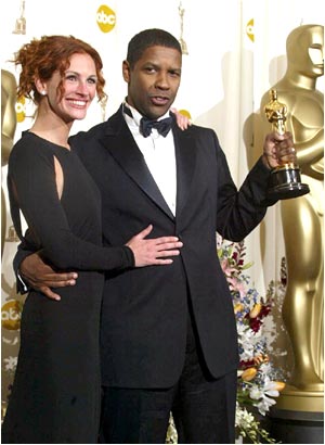 O Denzel Washington (Βραβείο A' Ανδρικού Ρόλου - Training Day) και η Julia Roberts