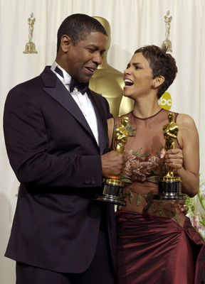 O Denzel Washington (Βραβείο A' Ανδρικού Ρόλου - Training Day) και η Halle Berry (Βραβείο A' Γυναικείου Ρόλου - Monsters Ball)