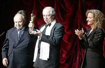 Ο Μιχάλης Κακογιάννης, ο Vittorio Storaro και η Δέσποινα Μουζάκη στη σκηνή του Ολύμπιον.