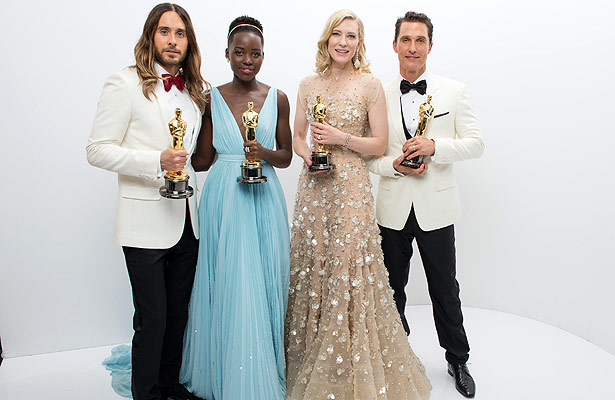 | © A.M.P.A.S. Ο Jared Leto («Dallas Byers Club»), η Lupita Nyong’o («12 Years A Slave»), η Cate Blanchett («Blue Jasmine») και ο Matthew McConaughey («Dallas Buyers Club») |