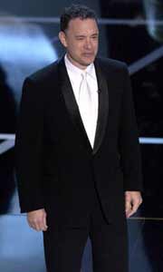 Ο επιβλητικός Tom Hanks επί σκηνής. |