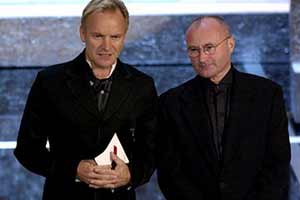 Οι γνωστοί τραγουδιστές και πολλές φορές υποψήφιοι για Oscar τραγουδιού, Sting και Phil Collins, αυτή τη φορά σε ρόλο παρουσιαστή. |