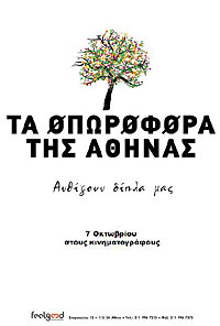 | Τα Οπωροφορα Της Αθηνας Σκηνοθεσία: Νικος Παναγιωτοπουλος Τι σχέση έχει η Βουδαπέστη με τη Λεωφόρου Συγγρού και τα ολόγλυκα σύκα με το Κολωνάκι και την Νεάπολη; Σ' αυτά και σε άλλα καυτά ερωτήματα θα απαντήσει ο Νίκος Παναγιωτόπουλος με τη νέα του δημιουργία, μια feelgood περιπλάνηση στους δρόμους της Αθήνας.